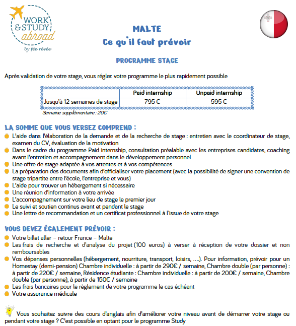 Un stage dans une entreprise étrangère avec 4 destinations au choix : Malte 🇲🇹 Irlande 🇮🇪 Australie 🇦🇺 Espagne 🇪🇸